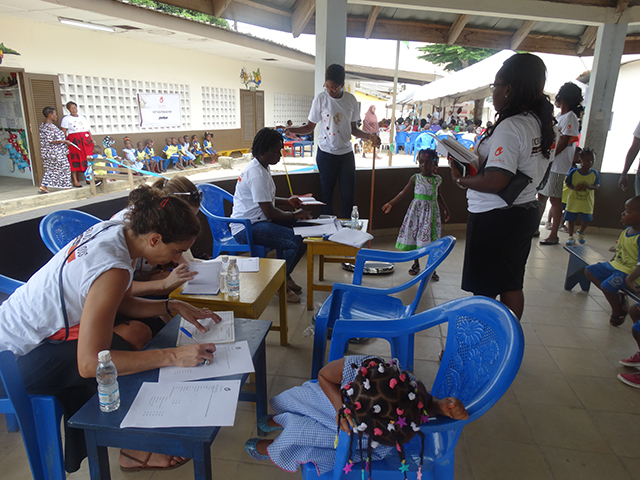 L'équipe de ANGE HELENE s'est mobilisée pour une campagne de sensibilisation et de vaccination (100 enfants de maternelle ont été vaccinés) à l'école maternelle de Montézo dans la commune d'Alépé en Côte d'Ivoire.